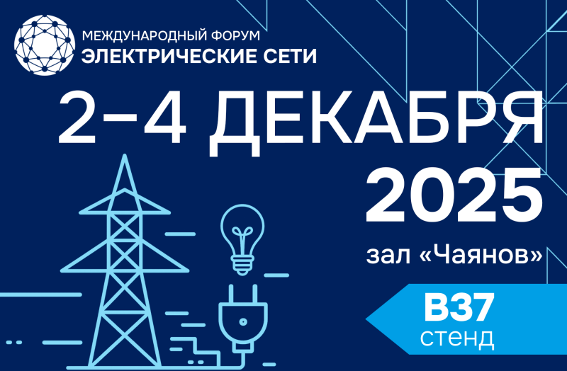 Приглашаем вас посетить наш стенд на Международном форуме «Электрические сети 2025», который пройдет со 2 по 4 декабря 2025 года в выставочном комплексе «Тимирязев Центр».