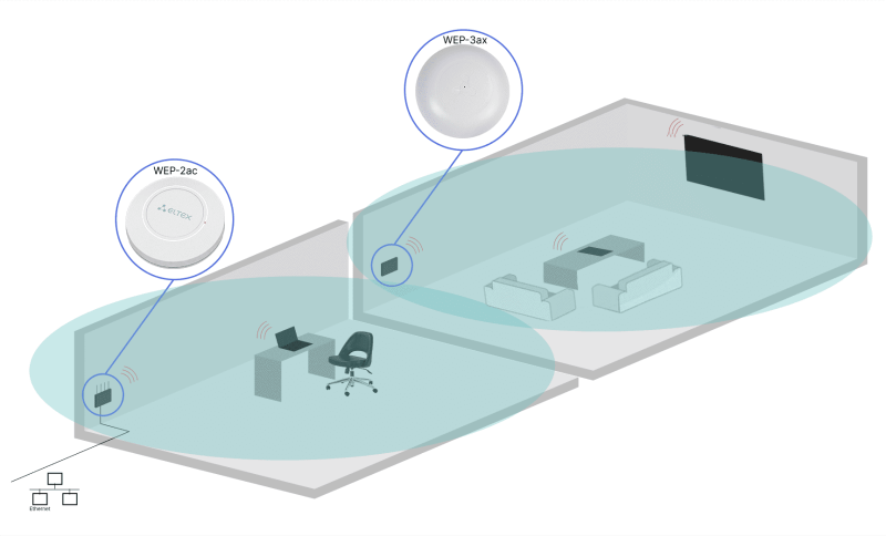 ELTEX – российская компания, известная своими современными технологиями в области сетевого оборудования. Ежегодно компания радует своих покупателейновинками продукции, в том числе, новыми точками доступа. На сегодняшний день ELTEX выпустили более 15 моделей внутренних и внешних точек доступа. Использование такого оборудования — это удобный и эффективный способ распространения беспроводного сигнала. Делая выбор между той или иной точкой доступа, стоит подробно изучить все преимущества и недостатки каждой. Чтобы сделать этот процесс проще и удобнее, сегодня мы хотели бы сравнить две популярные модели точки доступа: WEP-2ac и WEP-3ax.