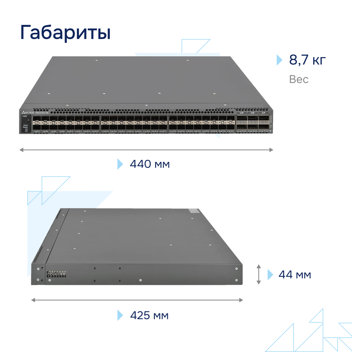 MES5305-48 - коммутатор уровня L3, что делает его идеальным выбором для сетей с большим количеством подсетей и компьютеров. Он способен обрабатывать IP-пакеты и принимать решения о маршрутизации данных, оптимизируя процесс коммутации и обеспечивая высокую скорость передачи.