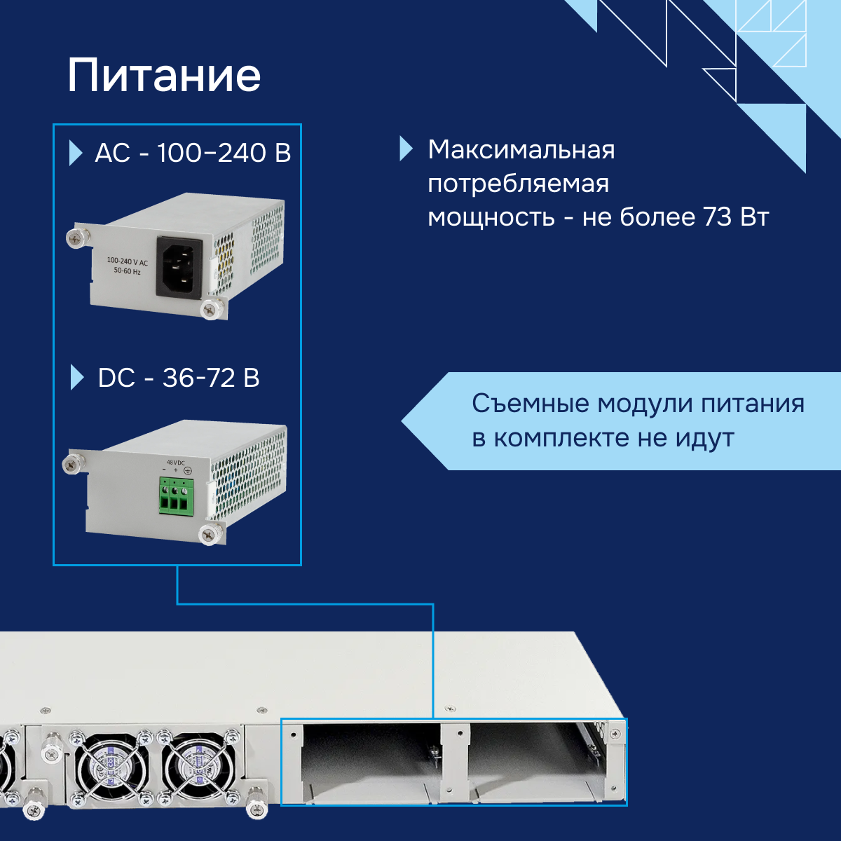 - Тип питания - до двух источников питания с возможностью горячей замены