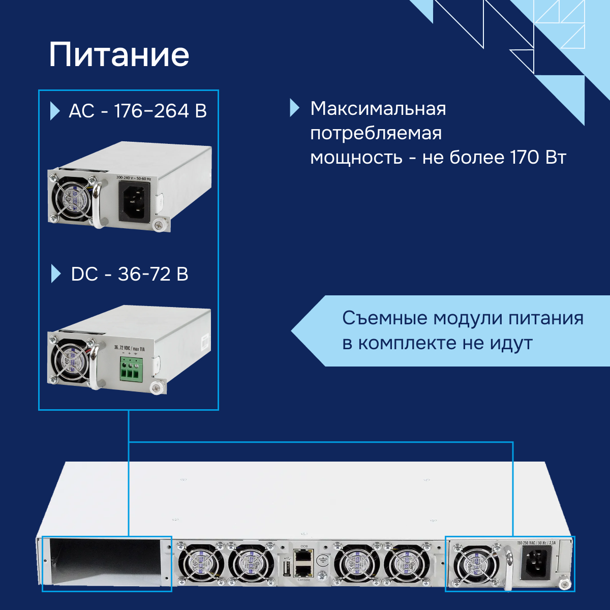 - Тип питания - до двух источников питания с возможностью горячей замены