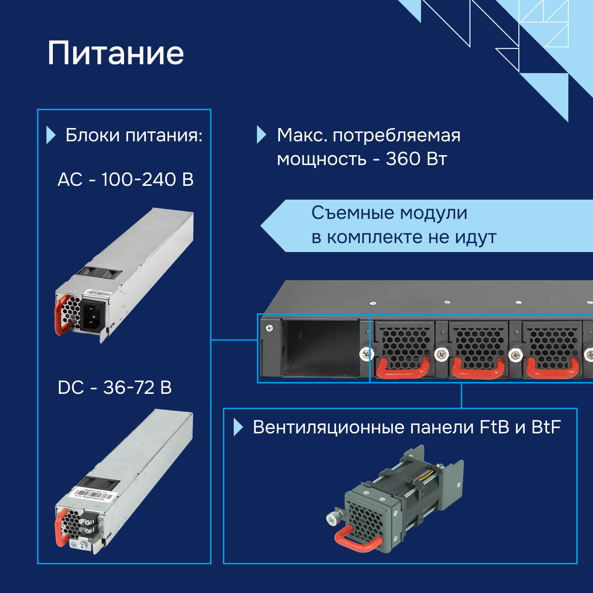 - Тип питания - до двух источников питания с возможностью горячей замены
