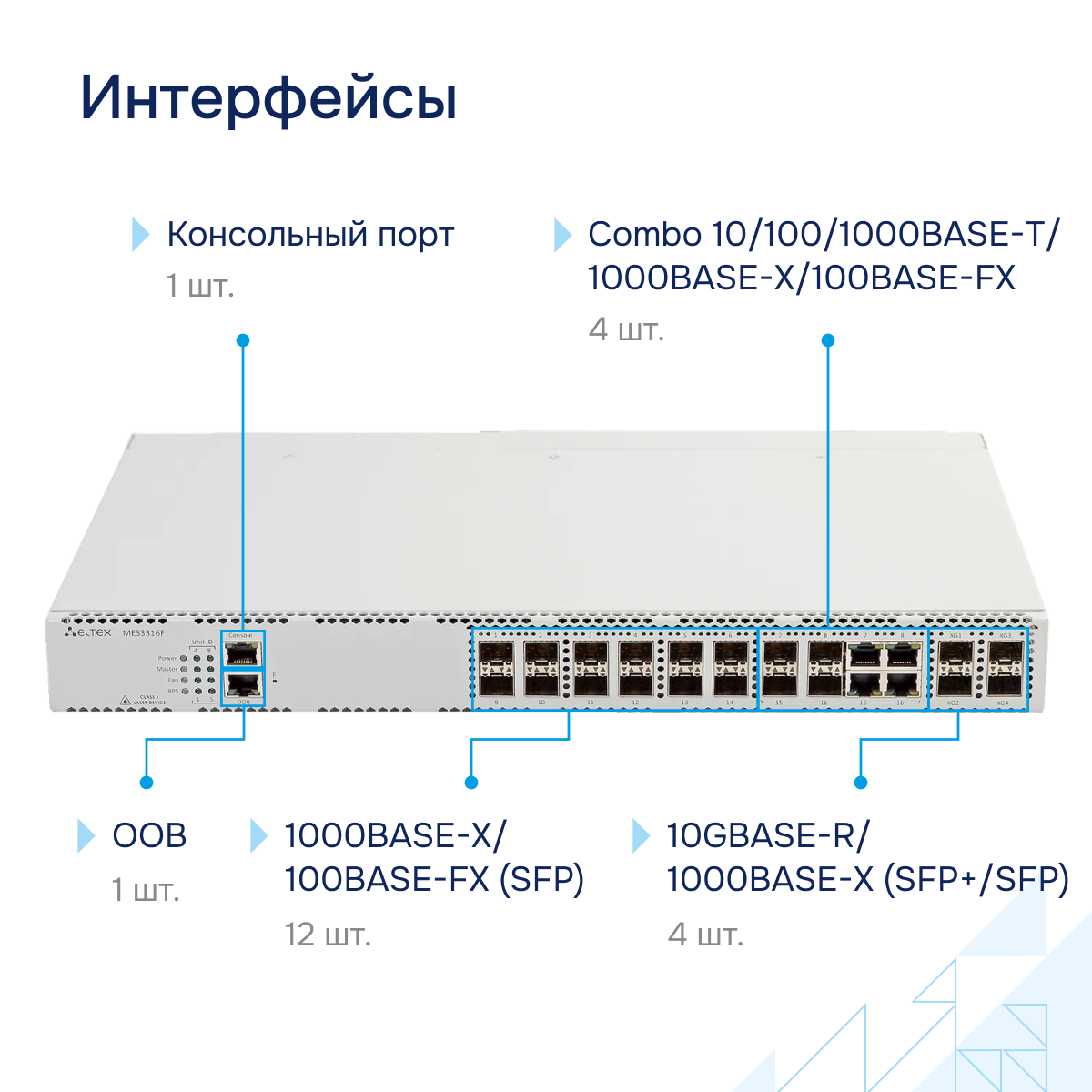 MES3316F является коммутатором уровня L3, что делает его идеальным выбором для сетей с большим количеством подсетей и компьютеров. Он способен обрабатывать IP-пакеты и принимать решения о маршрутизации данных, оптимизируя процесс коммутации и обеспечивая высокую скорость передачи.