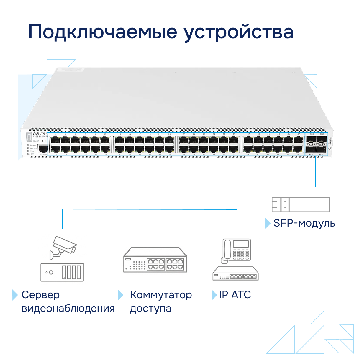 MES3400-48 является коммутатором уровня L3, что делает его идеальным выбором для сетей с большим количеством подсетей и компьютеров. Он способен обрабатывать IP-пакеты и принимать решения о маршрутизации данных, оптимизируя процесс коммутации и обеспечивая высокую скорость передачи.