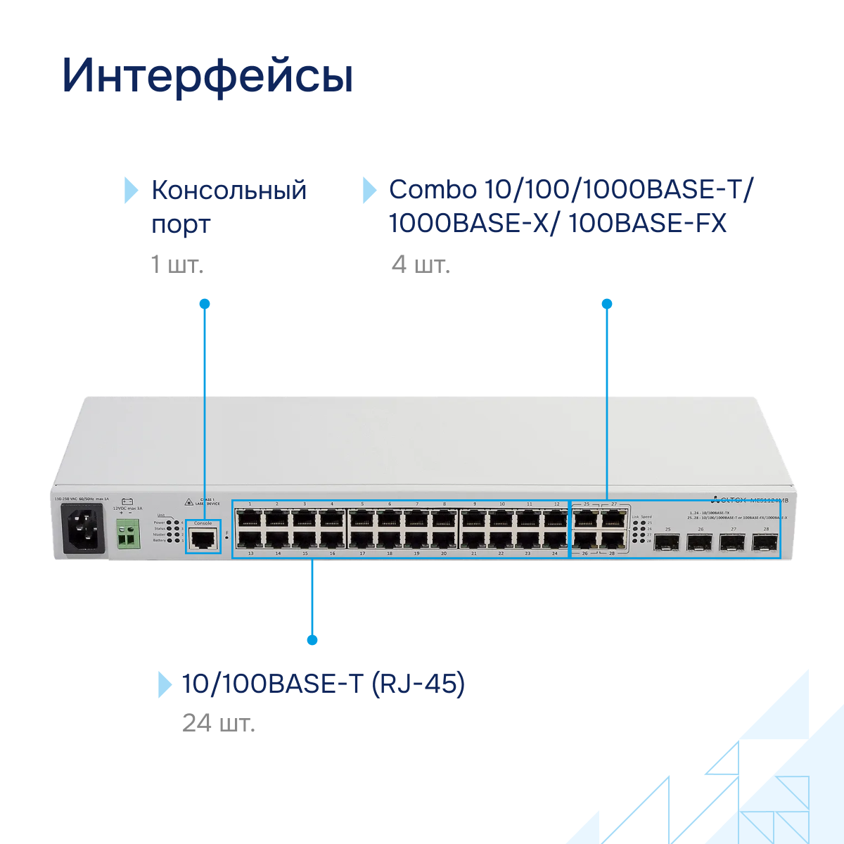 24 х 10/100 Base-T (RJ-45) |