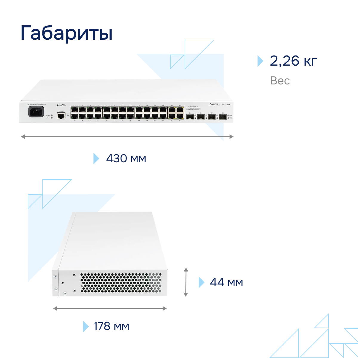 Еще одним важным преимуществом этого коммутатора является его удобство использования. MES1428 легко настраивается и интуитивно понятен даже для неопытных пользователей. У коммутатора понятный интерфейс, благодаря которому можно быстро менять настройки и добавлять новые устройства в сеть.
