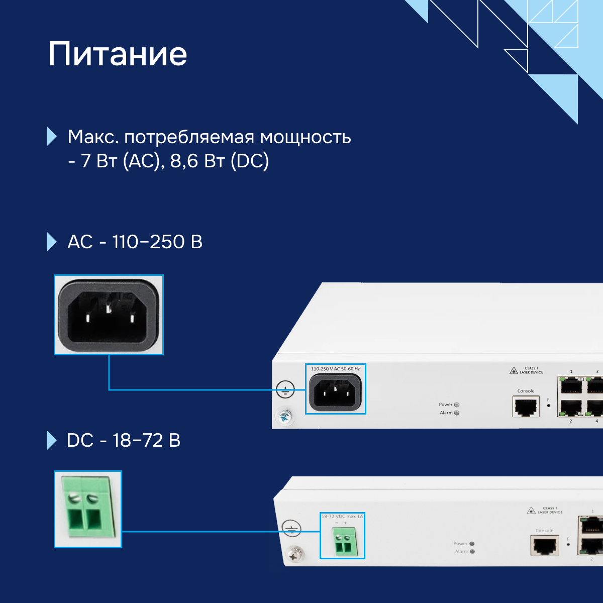 110–250 В AC, 50–60 Гц 18–72 В DC |