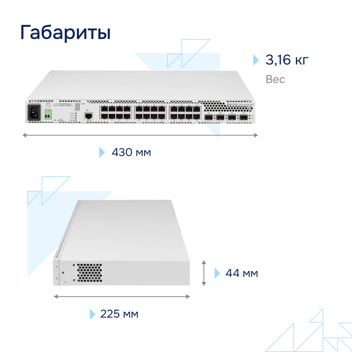 Важная особенность MES2420B-24D - расширенные функции безопасности. К ним относятся L2-L4 ACL (Access Control List) – список контроля доступа на уровне 2-4, IP Source Guard – защита IP-адресов и Dynamic ARP Inspection – защита сети от атак ARP-подделкой и др. Все эти функции призваны защищают сеть от различных угроз и повысить безопасность передаваемых данных.