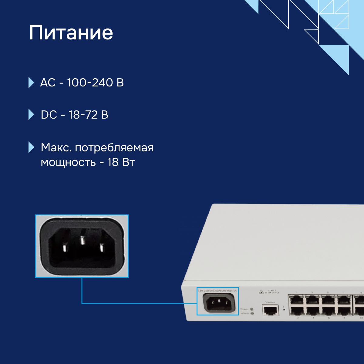 110–250 В AC, 50-60 Гц 18–72 В DC |
