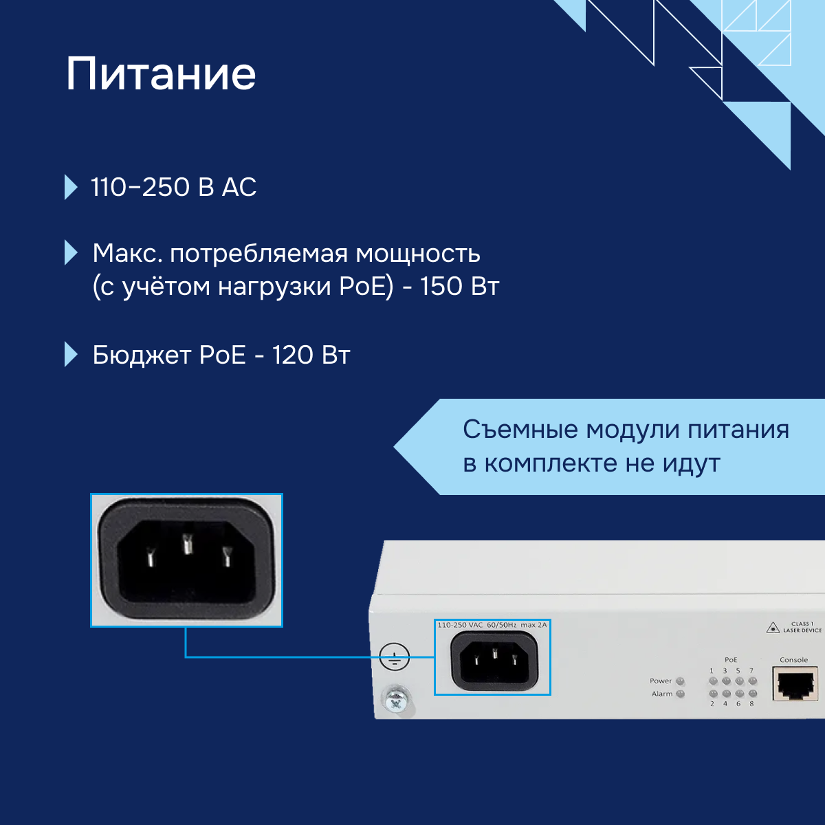 - Бюджет PoE - 120 Вт