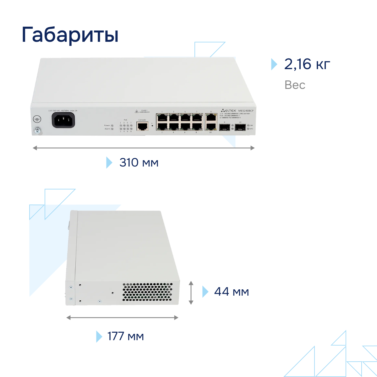 Управляемый коммутатор L2 MES2408СP с поддержкой PoE подключает конечных пользователей к сети крупных предприятий, предприятий малого и среднего бизнеса и к сетям операторов связи с помощью интерфейсов 1G/10G. 2. Крепления в 19" телекоммуникационную стойку;