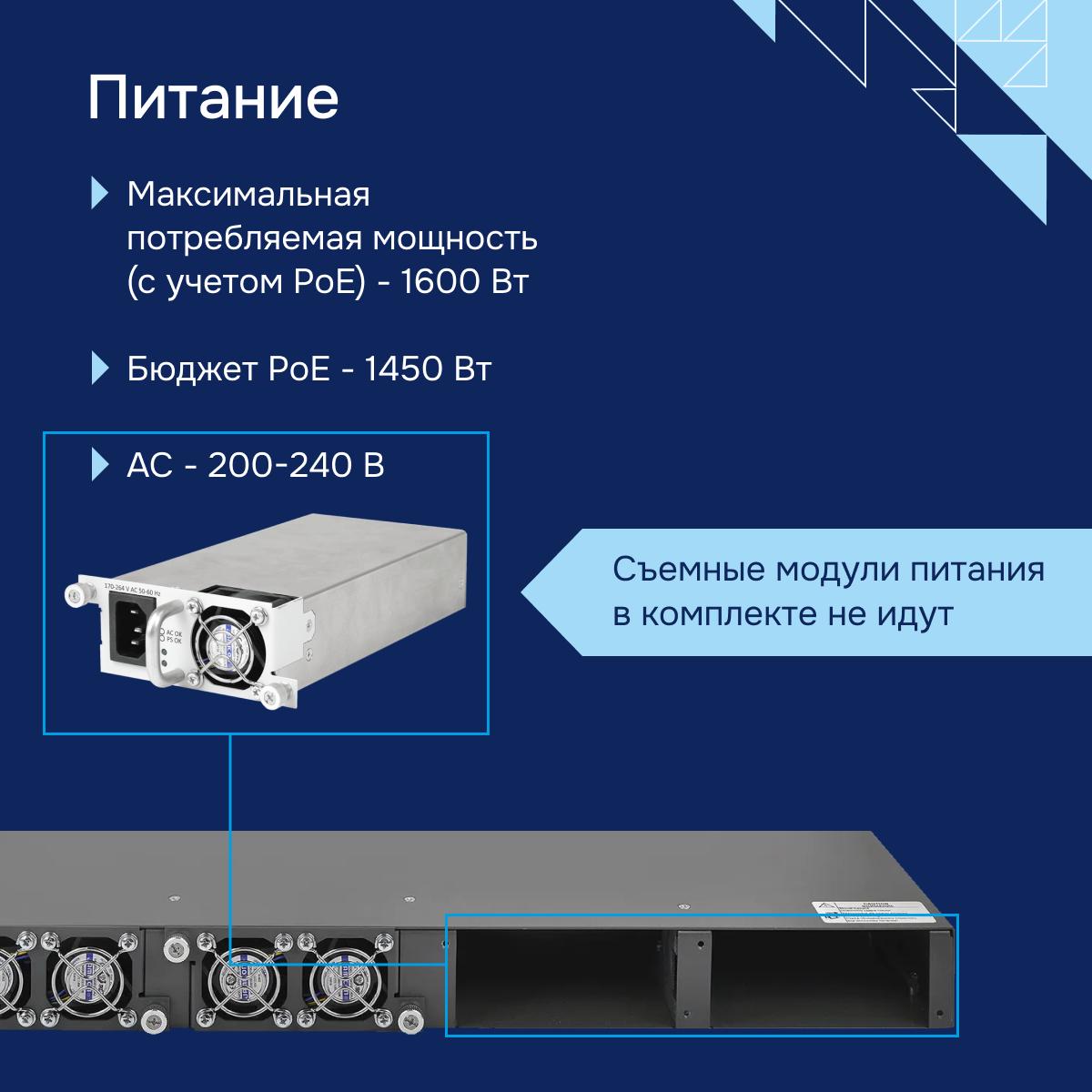 - Бюджет PoE - 370 Вт