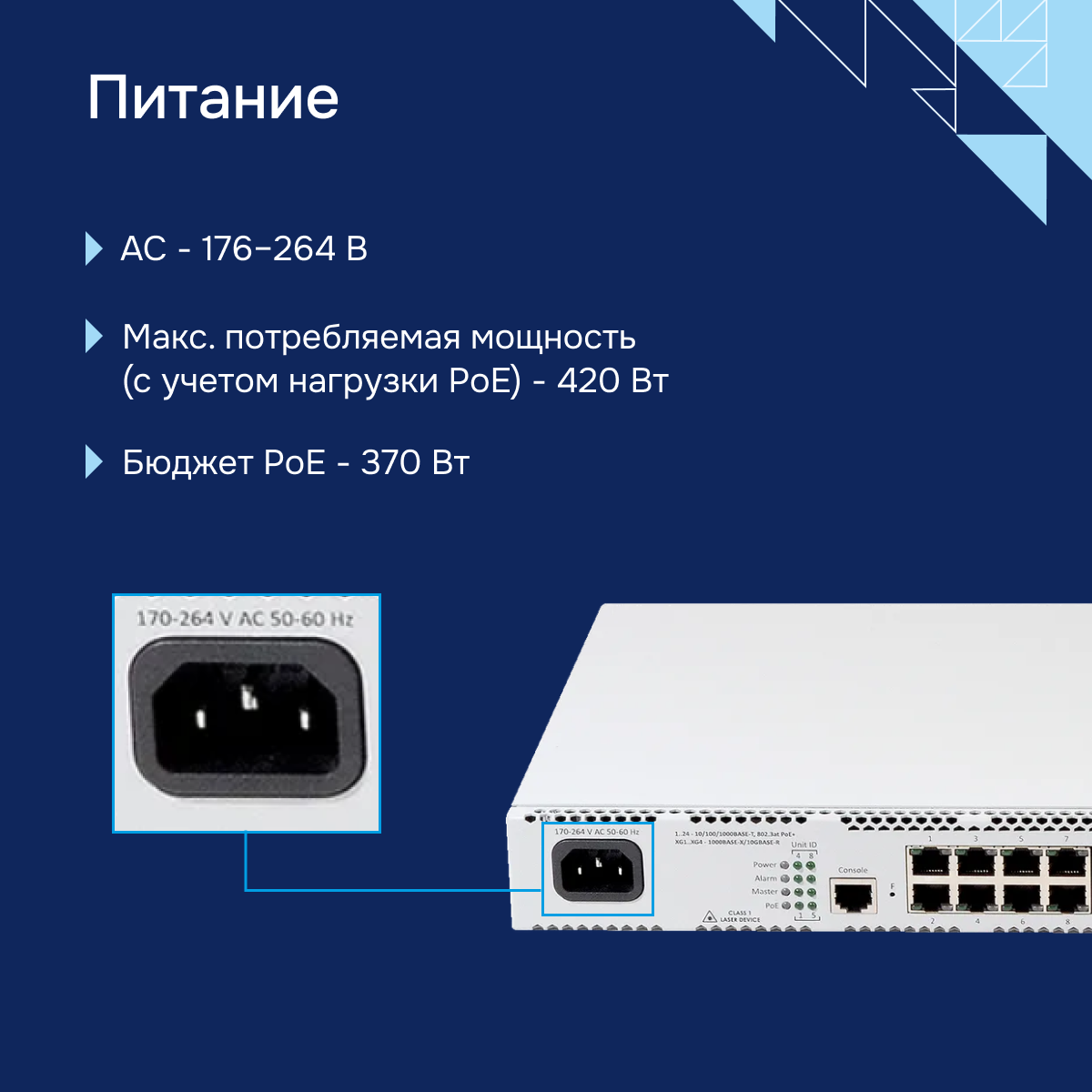 - Бюджет PoE - 370 Вт