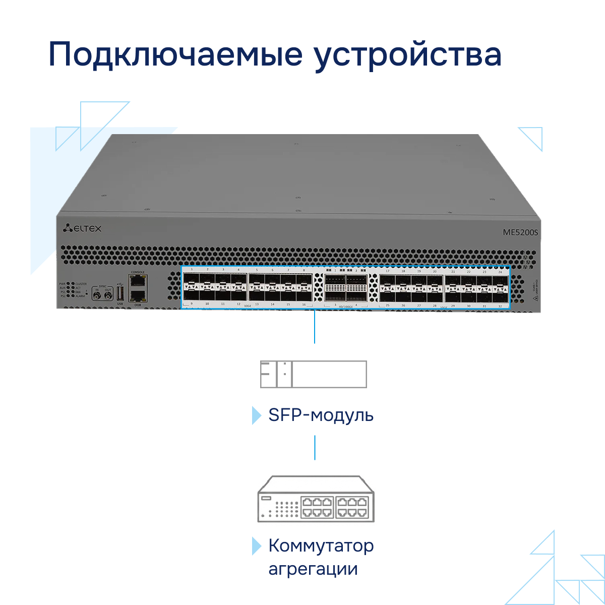 - 32 x 10GE SFP+. Поддерживают режим 1GE (1000BASE-X)