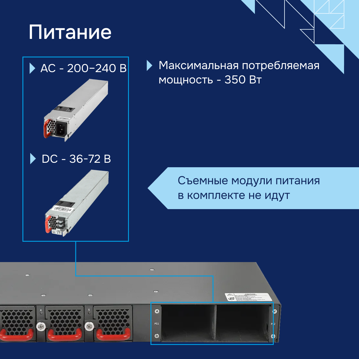 - Питание - до двух источников питания с возможностью горячей замены