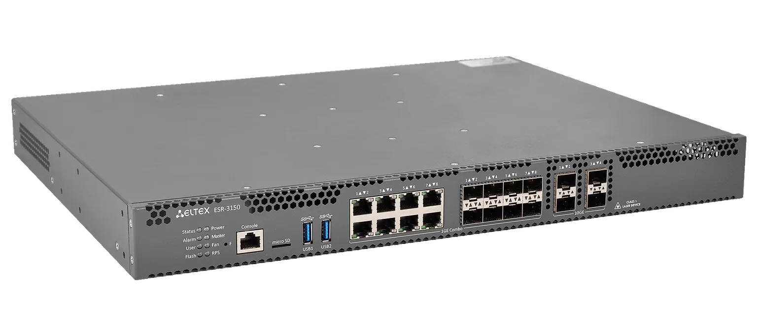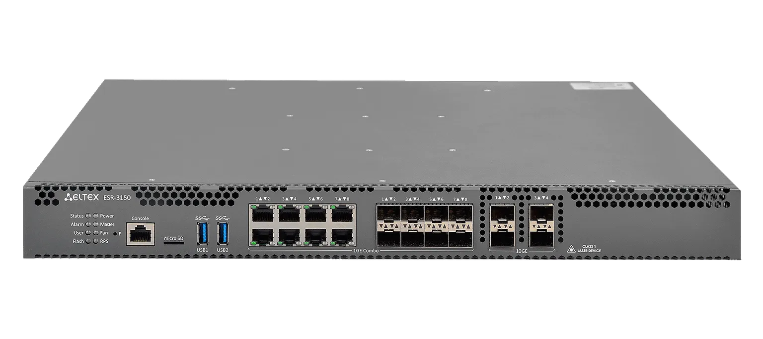 Маршрутизатор ESR-3150 — это высокопроизводительное устройство, представляющее собой универсальную аппаратную платформу и способное выполнять широкий круг задач, связанных с сетевой защитой, шифрованием передаваемых данных, терминированием пользователей и т. д. Этот маршрутизатор имеет расширенные функции маршрутизации, которые поддерживают сложные схемы сетевого взаимодействия, что позволяет гибко управлять сетевыми ресурсами внутри организации.