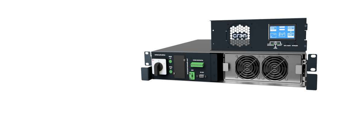 Компактность: Одно устройство СГП2 Р2М высотой 2U заменяет сразу три устройства от других производителей: ИБП (2U), внешний механический байпас (2U), АВР (3U).