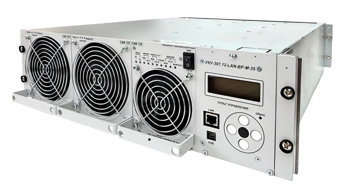 В данной модели УКУ-207.14-LAN-BP-M-25 встроен непосредственно в корзину с байпасом и модулем DC/AC.