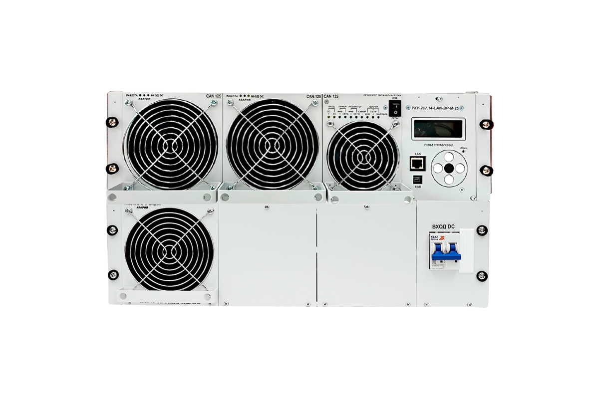 В данной модели УКУ-207.14-LAN-BP-M-25 встроен непосредственно в корзину с байпасом и модулем DC/AC.