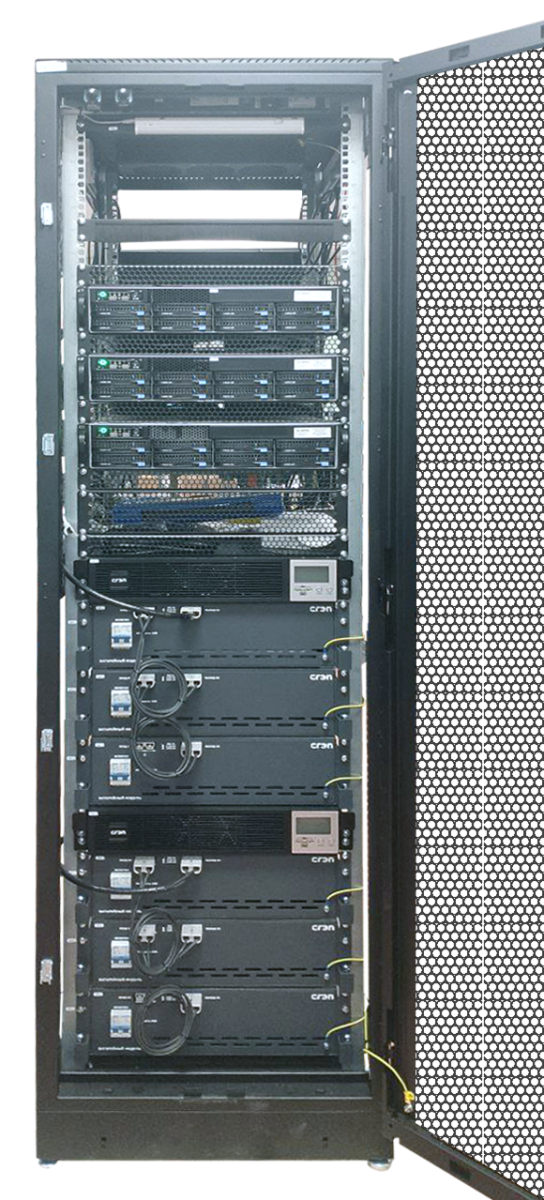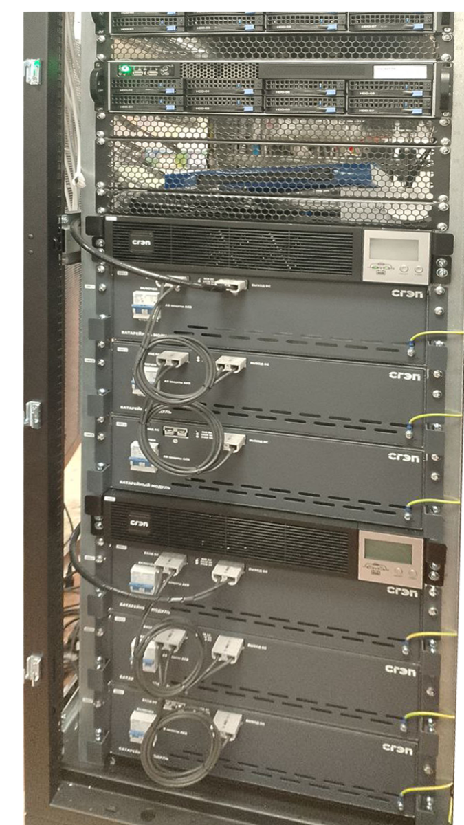 1. ИБП мощностью 3 кВА с двойным преобразованием энергии (On-Line), обеспечивающий стабильное питание чувствительной электроники контроллеров и устройств связи при любых неполадках в сети .